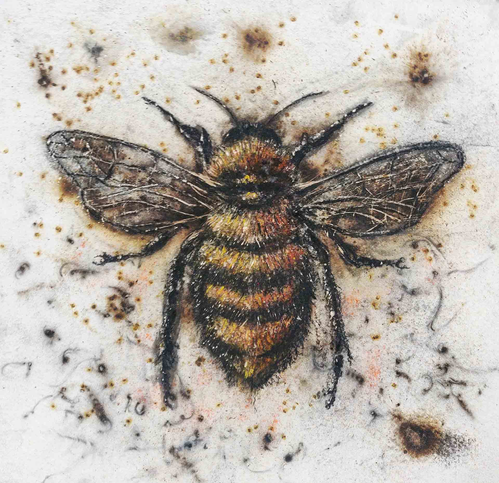 The Scottish artist and activist’s new work Nectar Harvester will be on display at the Society of Graphic Fine Art’s annual exhibition in London’s Mall Galleries from 17 to 21 May, just a few weeks after he sold all his work at the Royal Society of British Artists exhibition in the same venue.