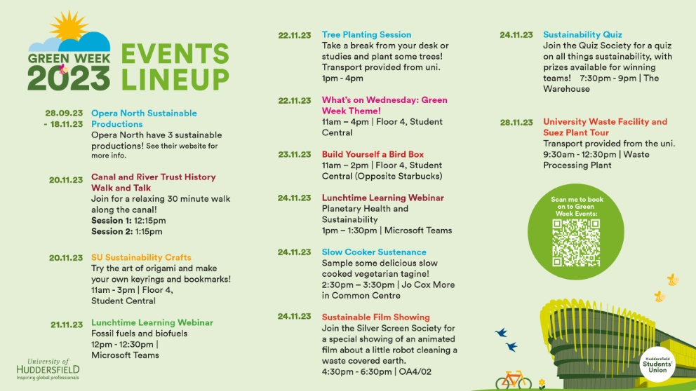 To finish our Green Week we will be celebrating with a Quiz on all things Sustainability hosted, by the Huddersfield University Quiz Society.